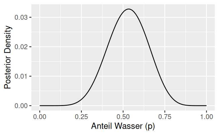 labs(x = "Anteil Wasser (p)", y = "Posterior Density")