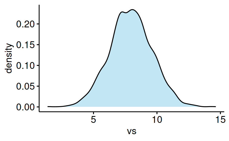 ggdensity(x = "vs", fill = "skyblue", color = "black")