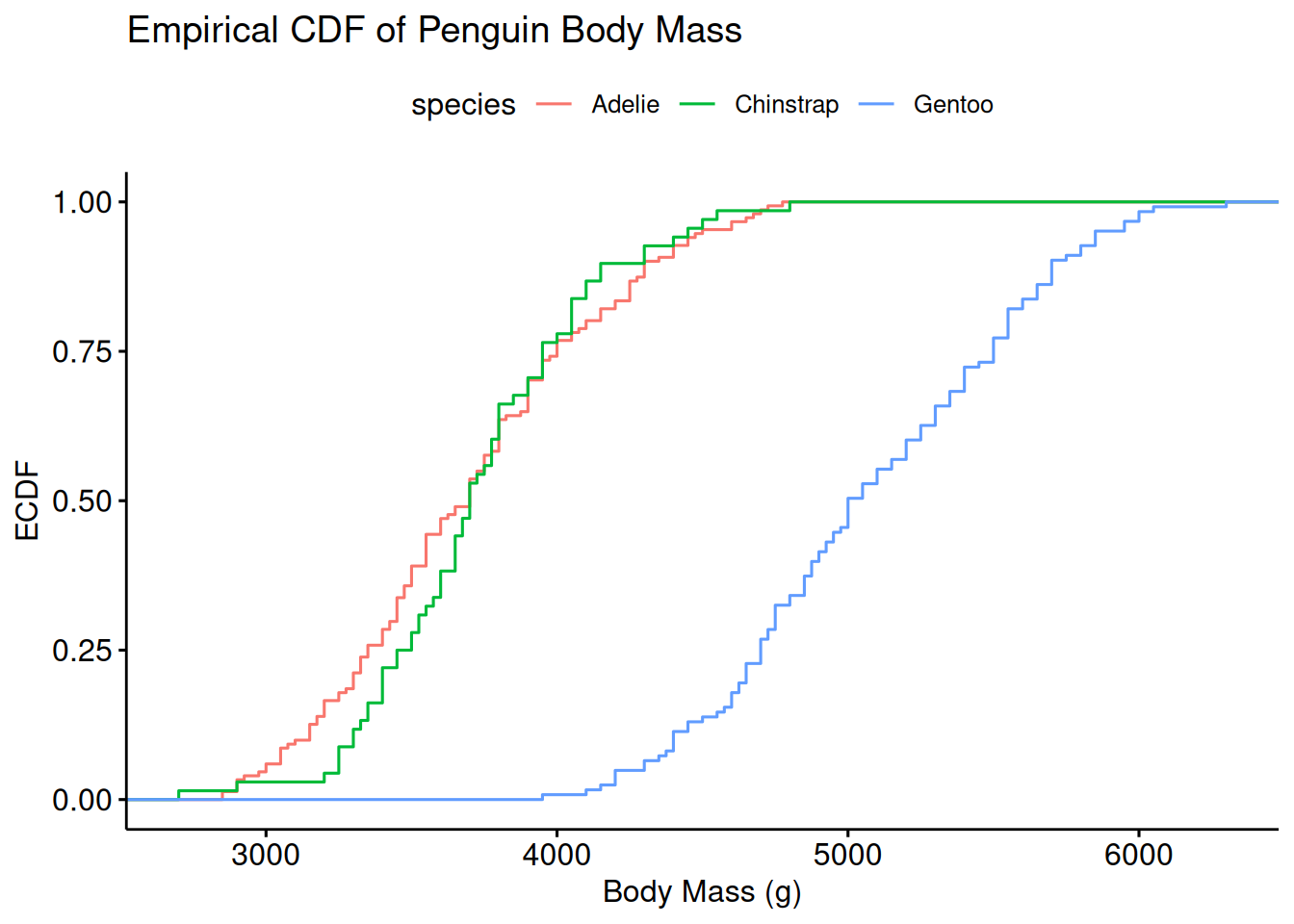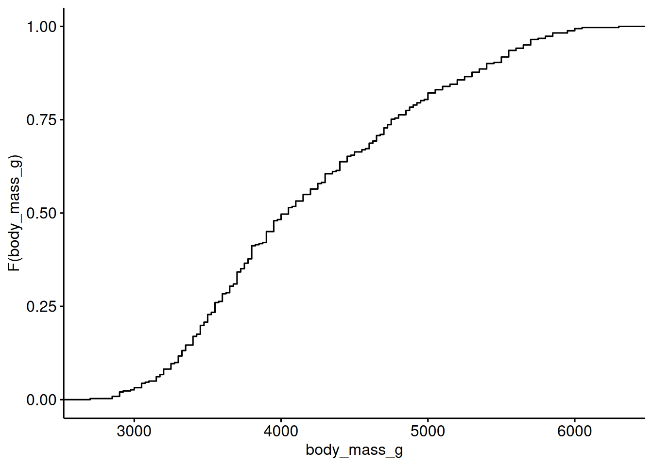 Die empirische kumulative Verteilungsfunktion nennt man auf Englisch: empirical cumulative distribution function, kurz ECDF.